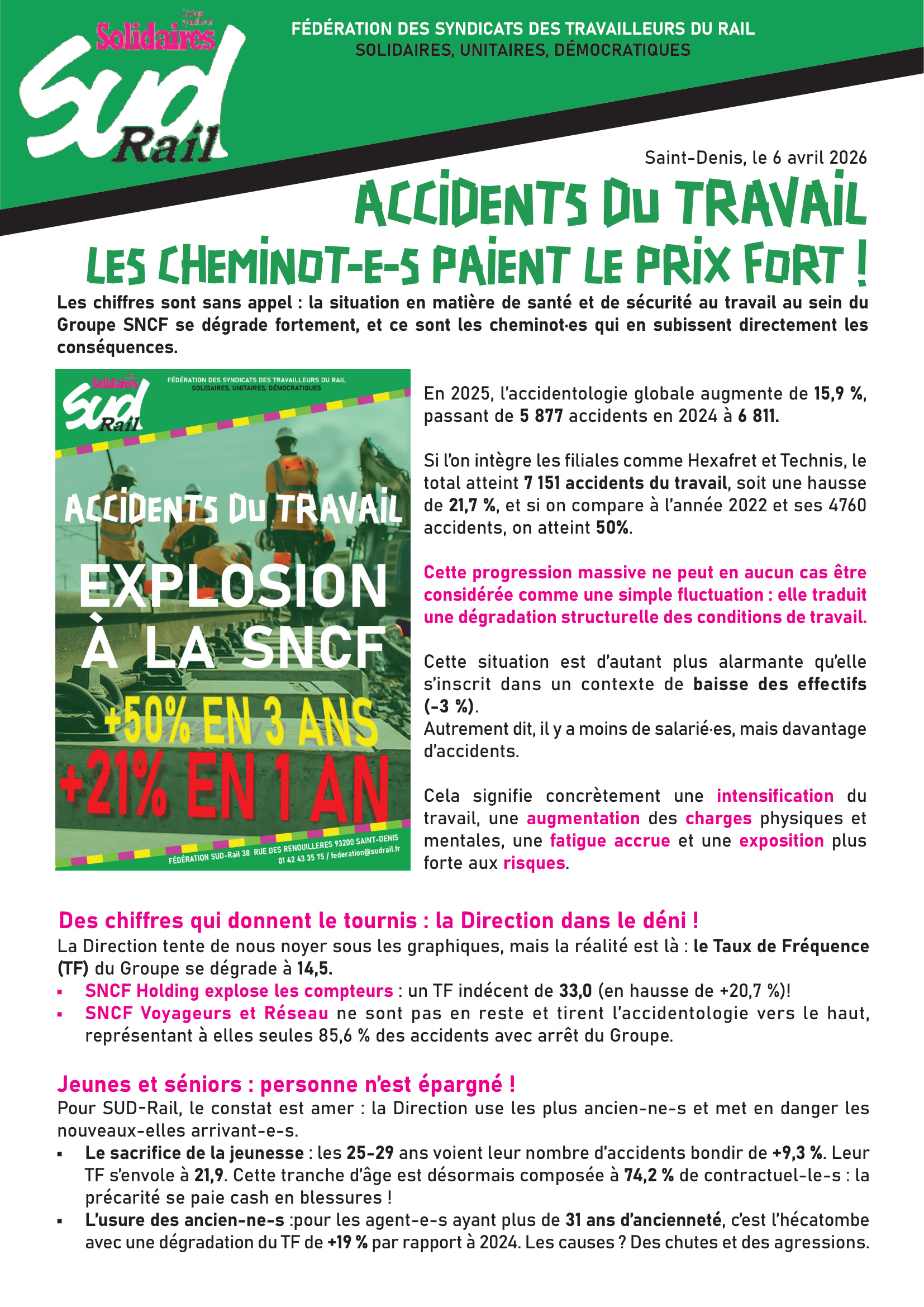 Tract National ACCIDENTS DU TRAVAILLES CHEMINOT-E-S PAIENT LE PRIX FORT ! Parsudraillyon 6 avril 202617 avril 2026