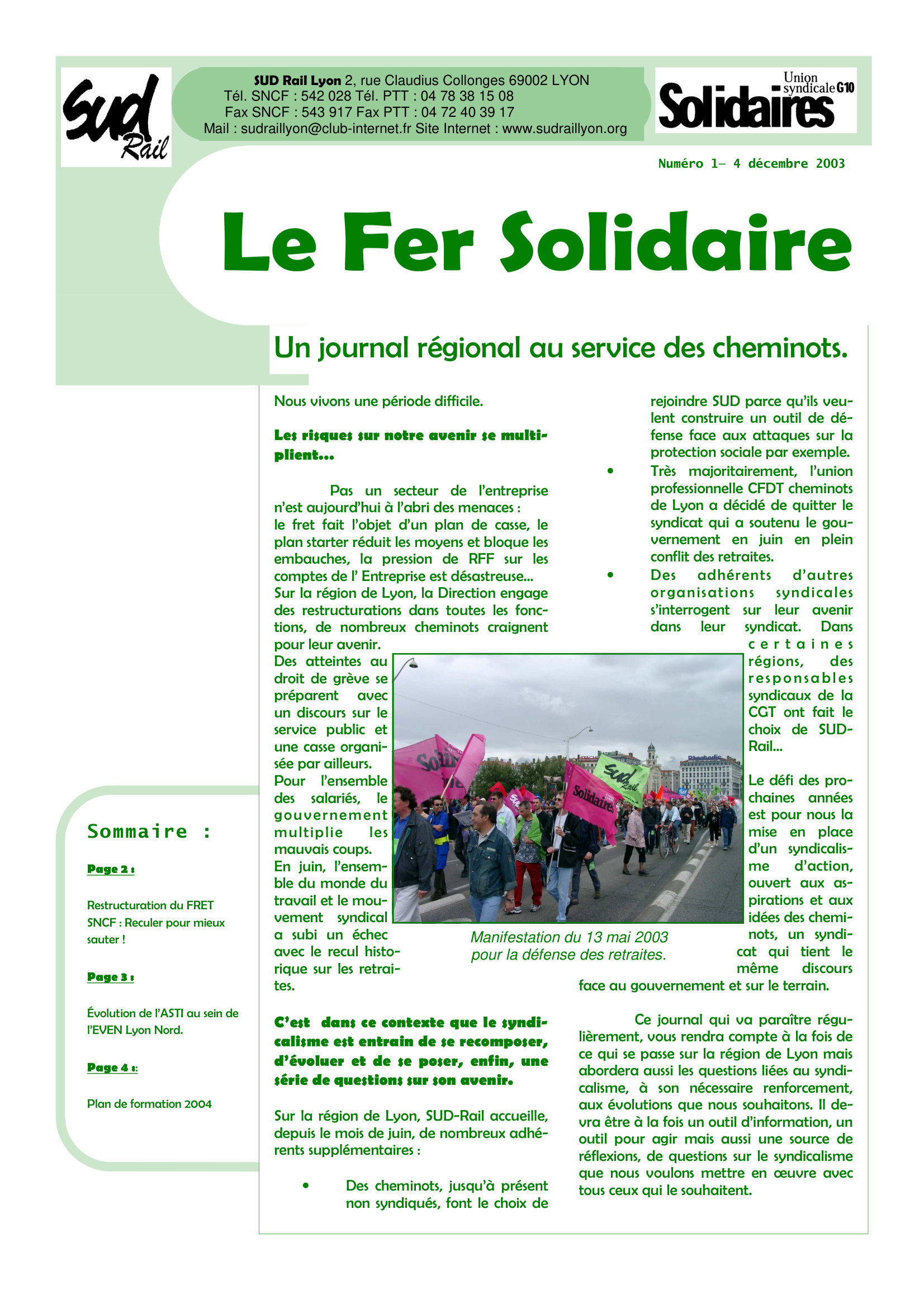 Journal Régional « Fer Solidaire » N°1