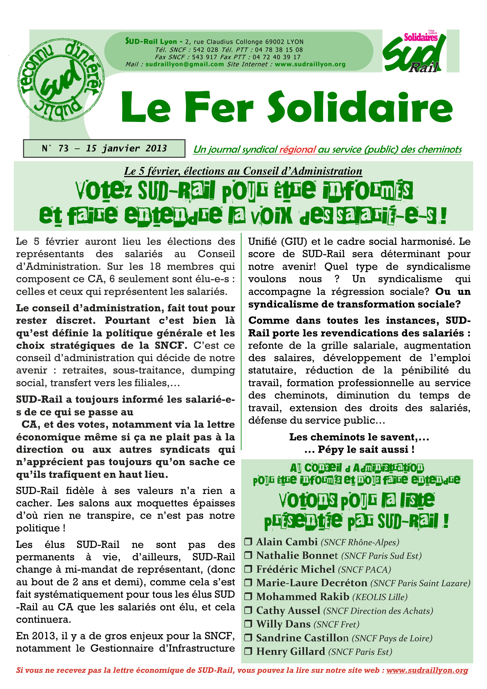 Journal Régional « Fer Solidaire » N°73