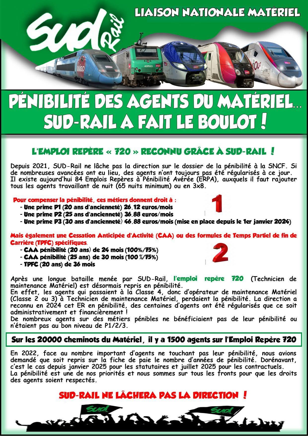 Pénibilité des agents du matériel: Sud Rail a fait le boulot